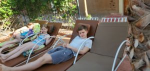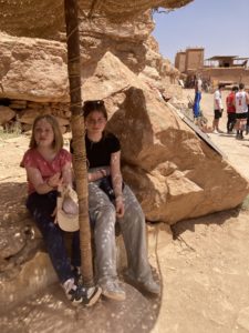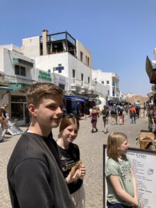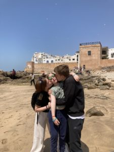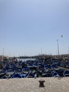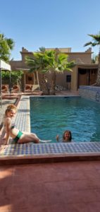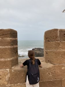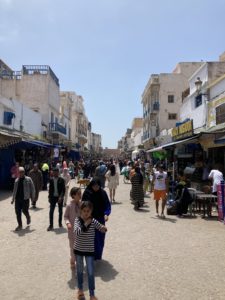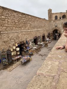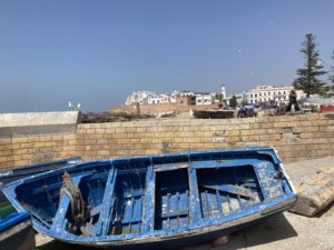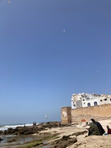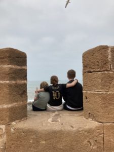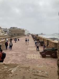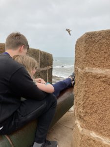 Aujourd’hui, changement d’ambiance, on s’est fait une virée à Essaouira au bord de l’océan : beaux remparts, bons fruits de mer et une baignade pour Maya et Alma!
