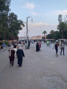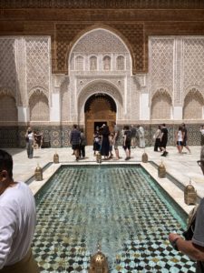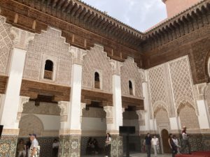 Hier balade dans la médina de Marrakech avec visite de la medersa Ben Youssef entièrement refaite en 2022 et qui est magnifique. Fin de journée dans les vapeurs de la place Jemaa El Fna.