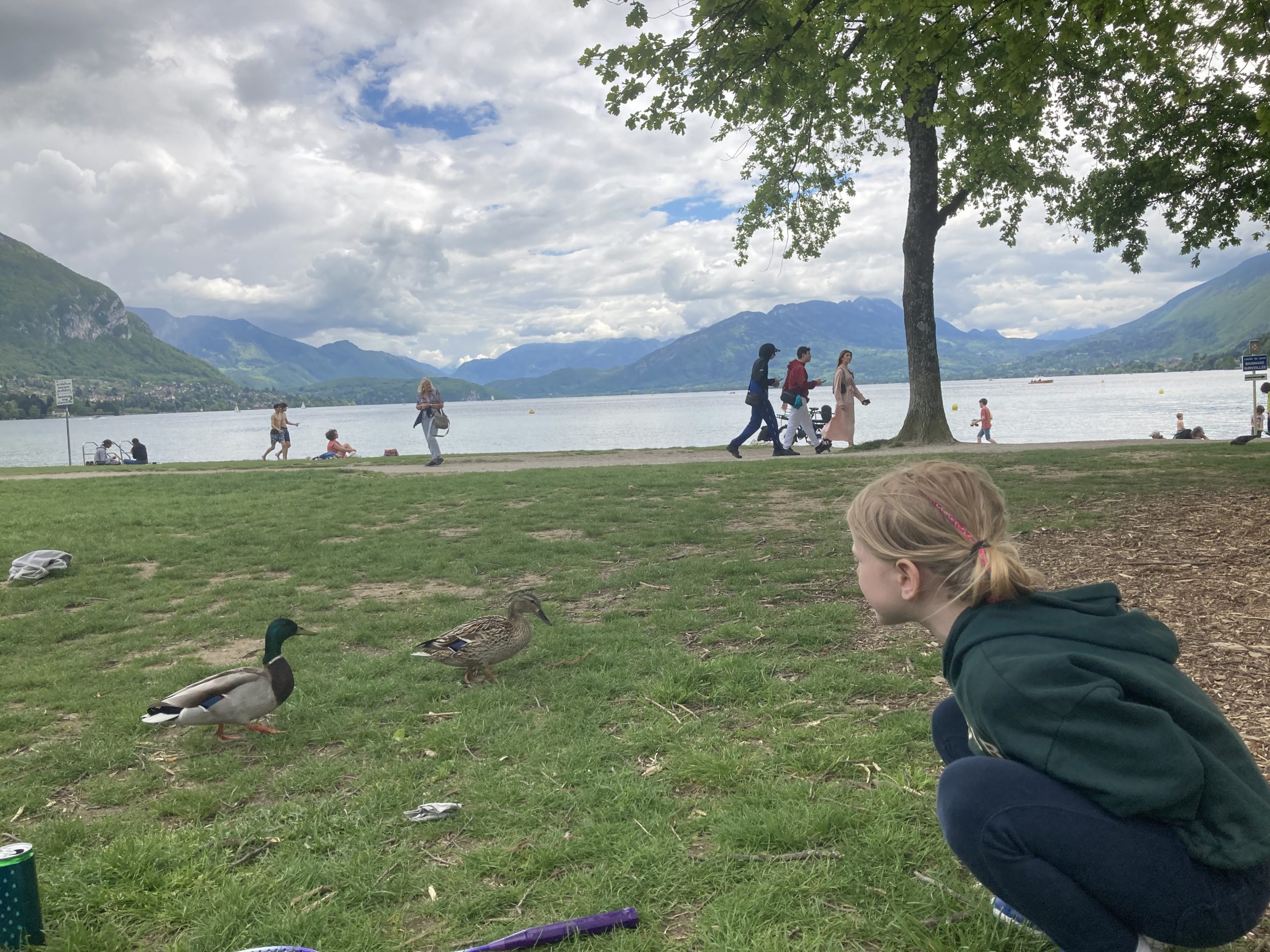 Hier nous avons passé la journée à Annecy (avec du soleil cette fois). Vélo, pique-nique, reblochon, et baignade pour les plus courageux….