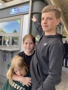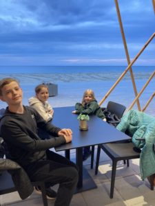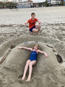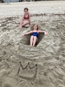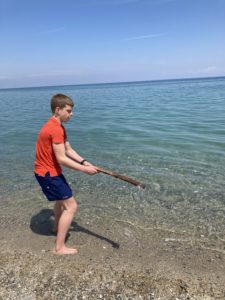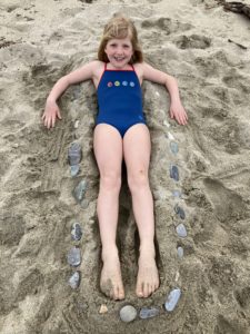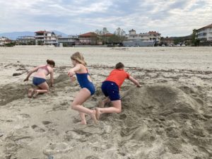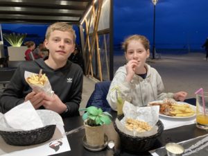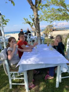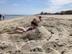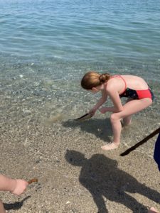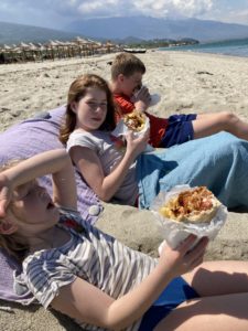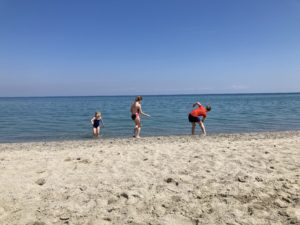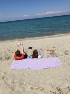 Ensuite nous sommes allés à la plage et nous avons pris des gyros, allongés sur notre canapé en sable, face à la mer, nous avons aussi fait des ricochets et attrapé des méduses !!!