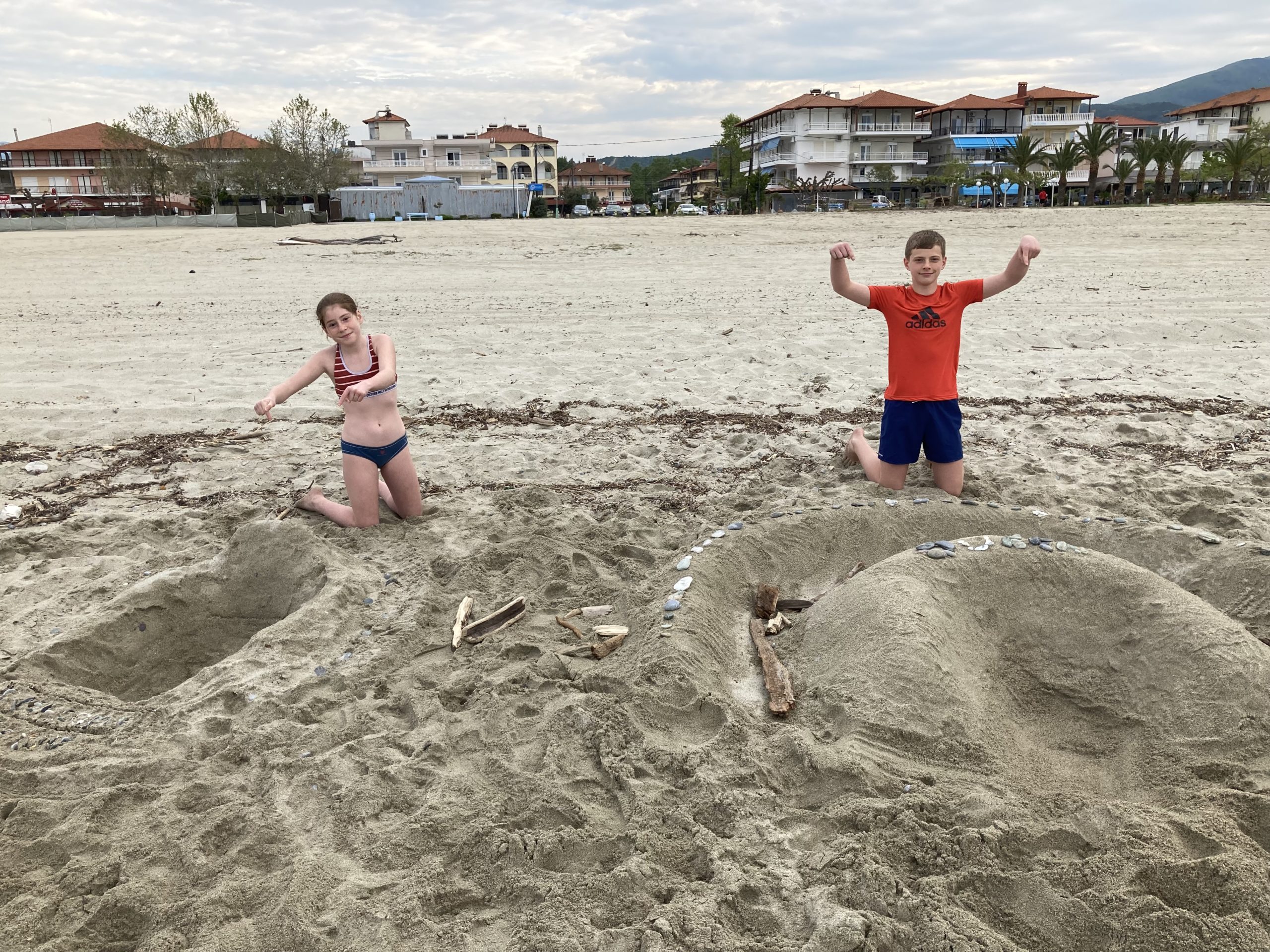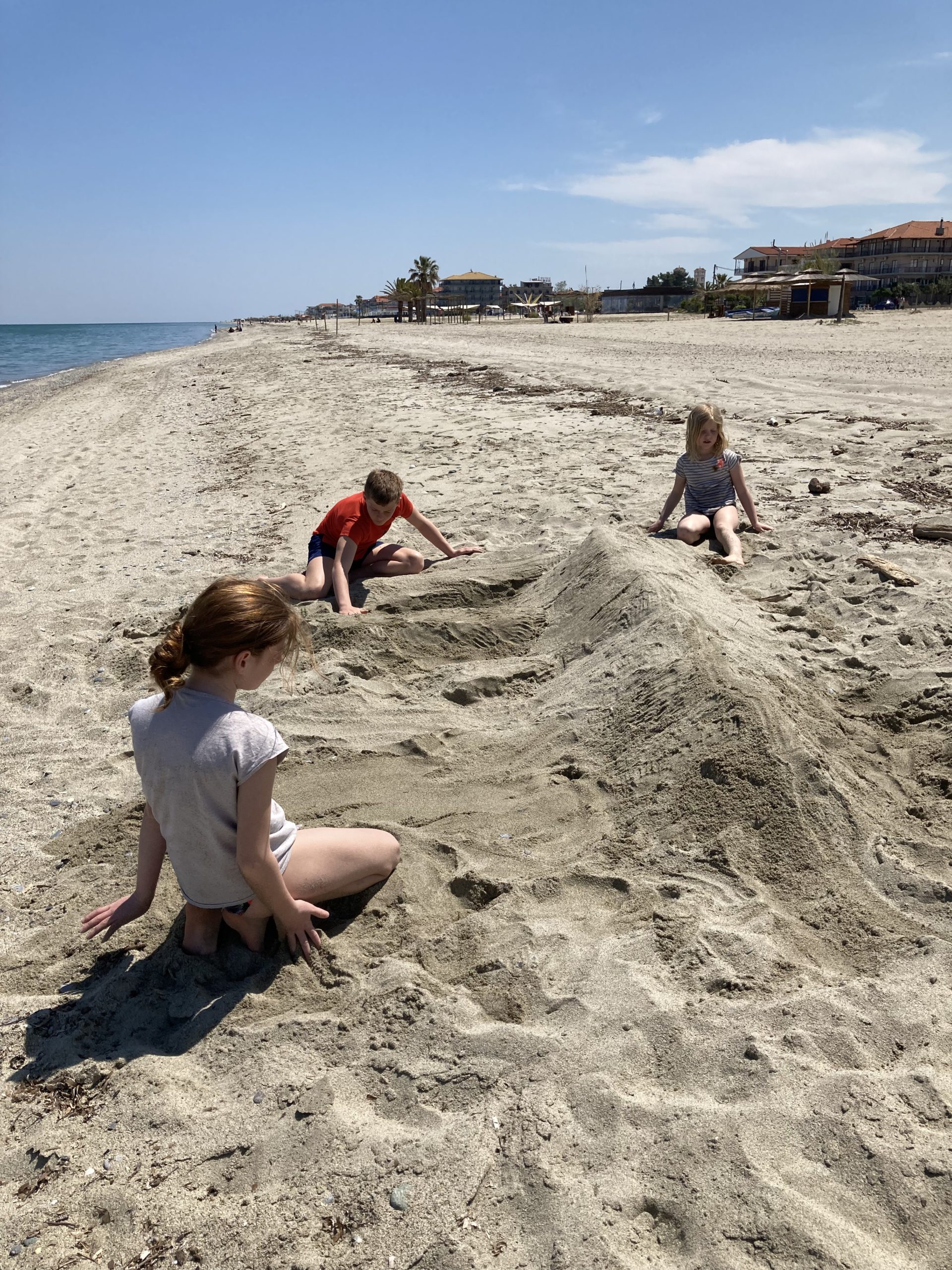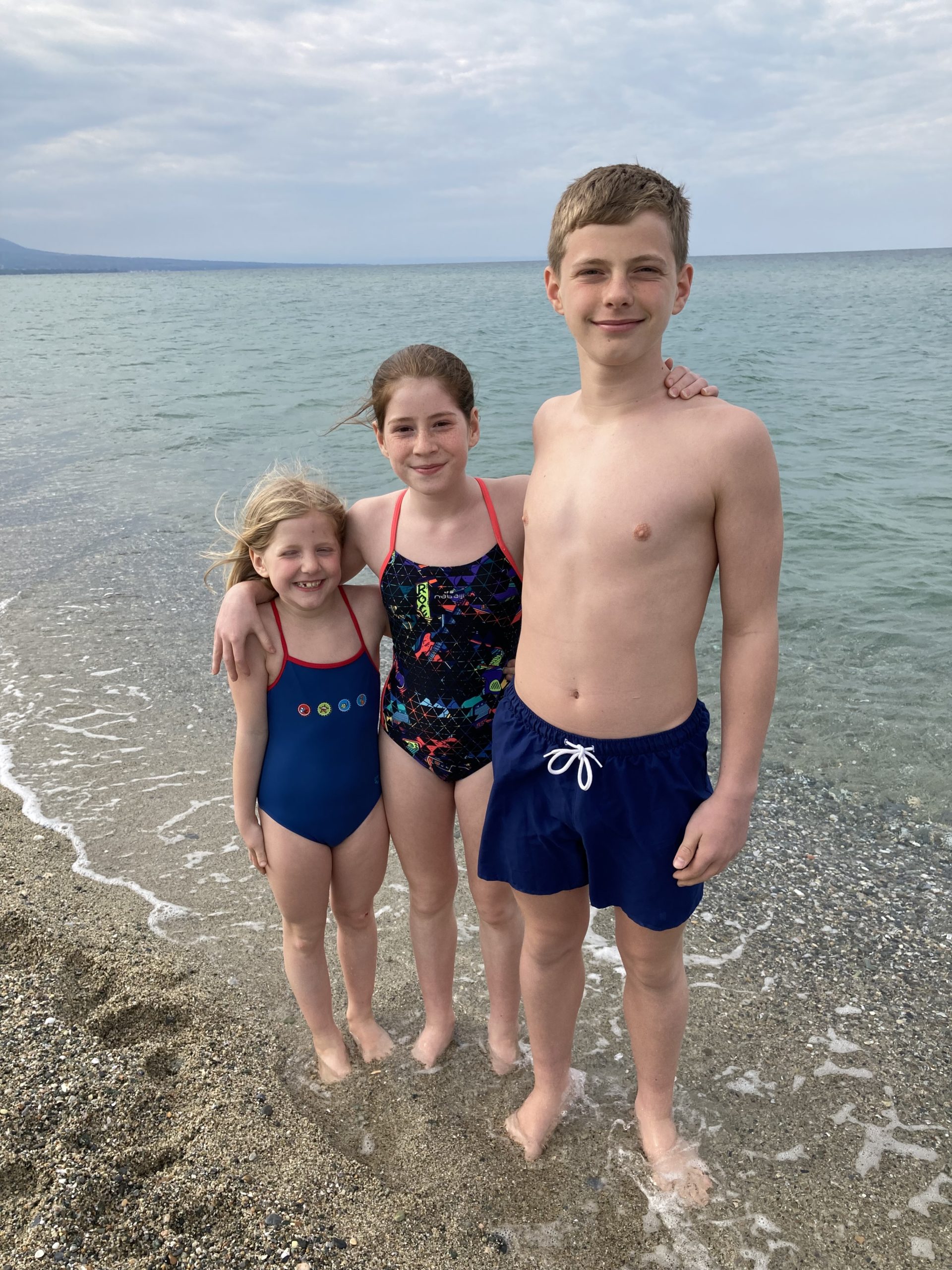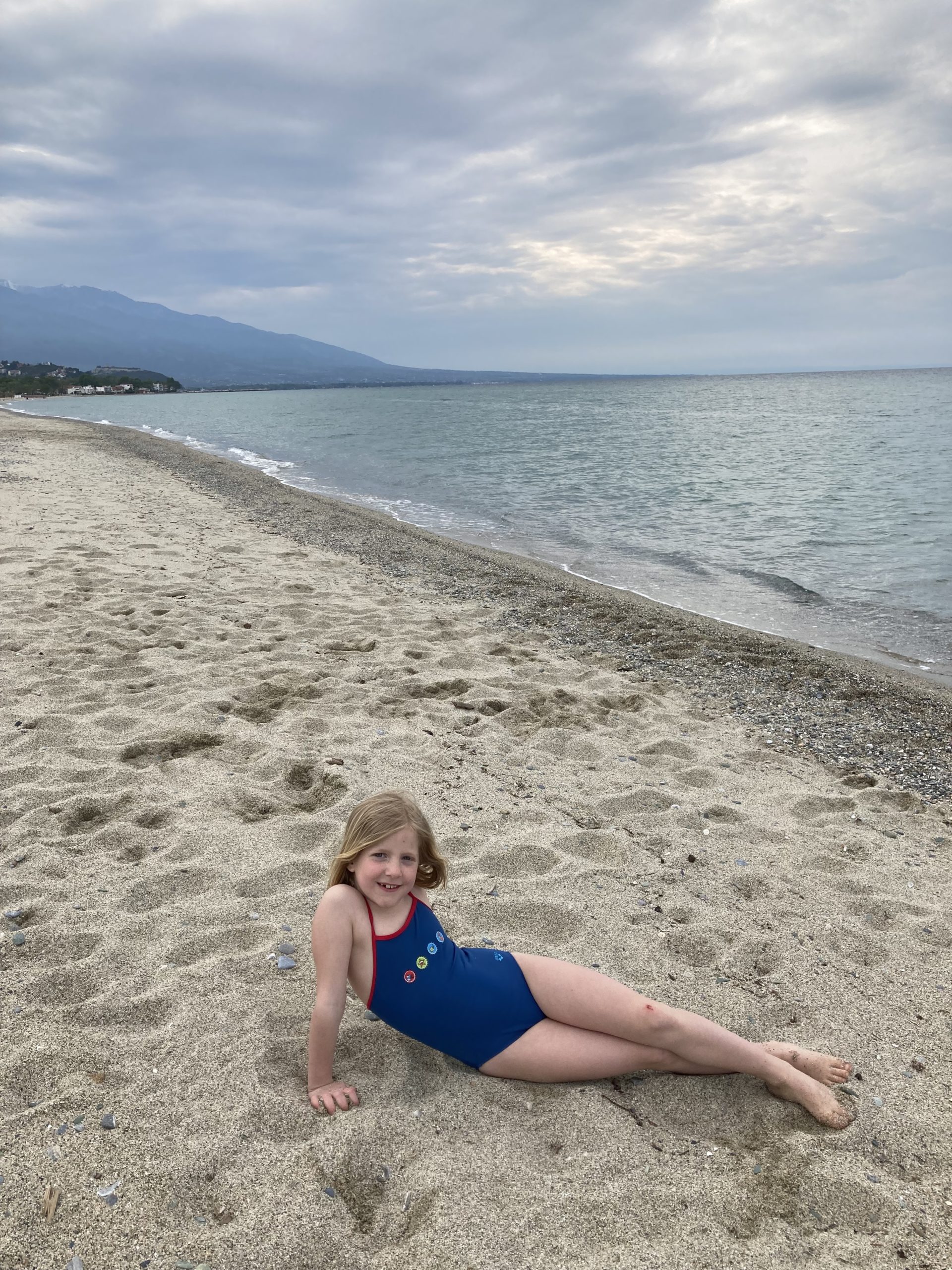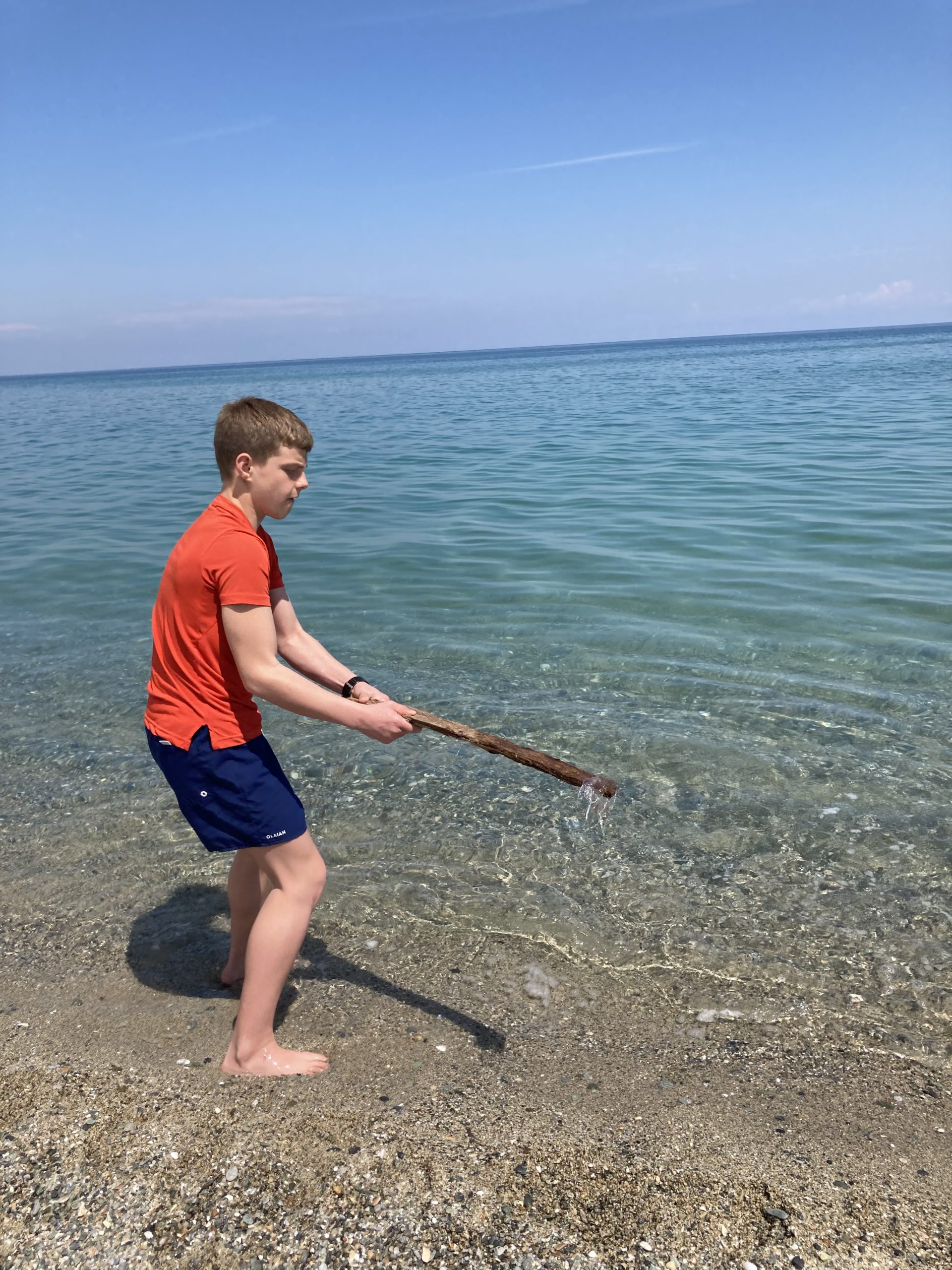 Ensuite nous sommes allés à la plage et nous avons pris des gyros, allongés sur notre canapé en sable, face à la mer, nous avons aussi fait des ricochets et attrapé des méduses !!!